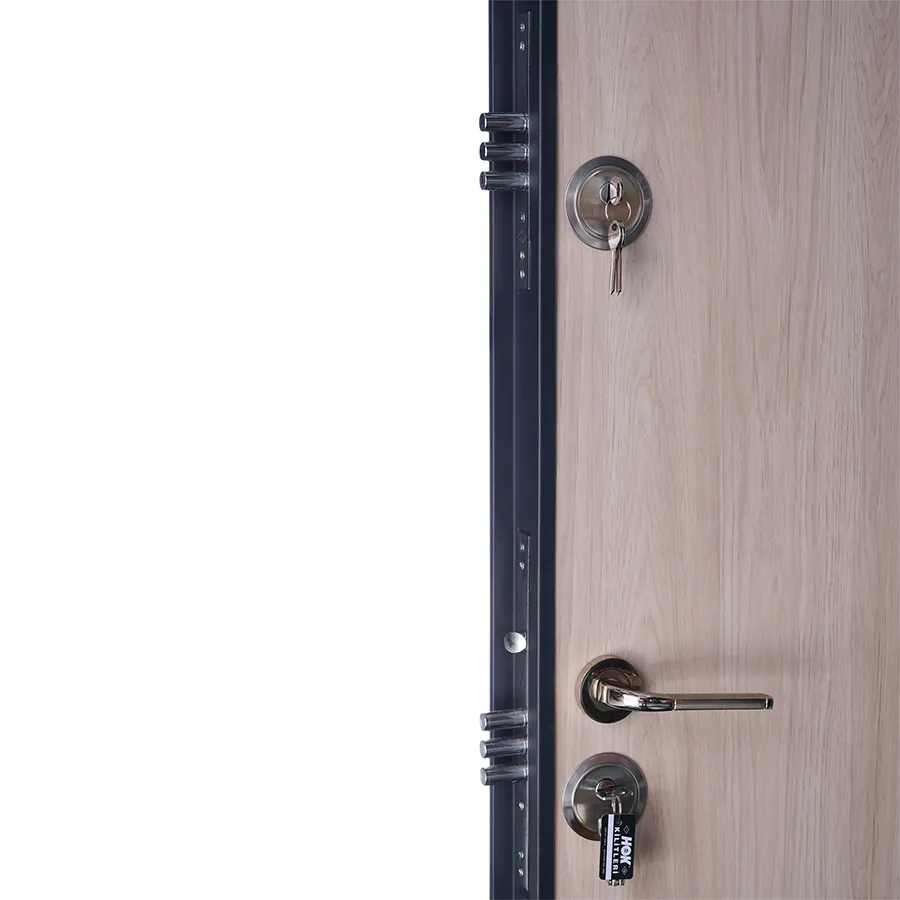 Ușă metalică de intrare în apartament Ekoplus Modern 00 Artar, disponibilă cu deschidere pe dreapta sau stânga, oferă o soluție elegantă și sigură pentru protejarea locuinței. Cu un design modern și finisaj în nuanța arțar, această ușă adaugă un plus de căldură și rafinament oricărui decor interior. Construcția solidă din tablă galvanizată asigură durabilitate, iar placarea exterioară cu MDF laminat de 8 mm oferă un aspect estetic și o textură plăcută la atingere.
