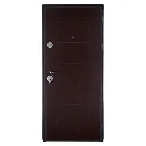 Ușă metalică de intrare în apartament Ekoplus Modern 131 Wenge, disponibilă cu deschidere pe dreapta sau stânga, oferă un echilibru ideal între siguranță și estetică. Finisajul în nuanța wenge adaugă un aer elegant și sofisticat, fiind potrivit atât pentru interioare moderne, cât și clasice. Structura solidă din tablă galvanizată asigură durabilitate, iar placarea exterioară cu MDF laminat de 8 mm oferă un finisaj de calitate și o textură plăcută la atingere.