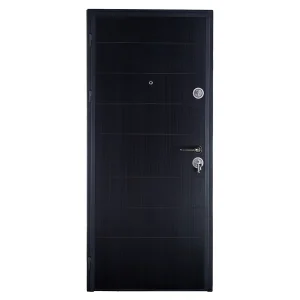 Ușă metalică de intrare în apartament Ekoplus Modern 2015 Negru Perlat, disponibilă cu deschidere pe dreapta sau stânga, oferă un nivel înalt de siguranță și un design elegant, potrivit pentru interioare moderne. Finisajul în nuanța negru perlat adaugă rafinament și profunzime vizuală, transformând orice intrare într-un element de stil. Construcția robustă din tablă galvanizată garantează durabilitate, iar placarea exterioară cu MDF laminat de 8 mm conferă un aspect estetic premium și o textură plăcută la atingere.
