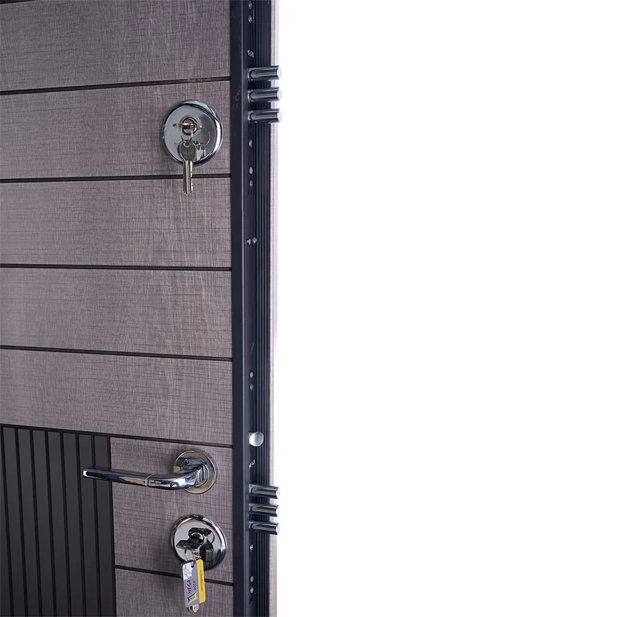Prestige 1 Lux 1034, disponibilă cu deschidere pe dreapta sau pe stânga, este o ușă metalică de apartament cu o structură ranforsată din tablă galvanizată. Placată cu MDF furniruit sau laminat de 8 mm grosime și dotată cu izolație interioară din vată bazaltică, această ușă oferă durabilitate, siguranță și un aspect estetic rafinat.
